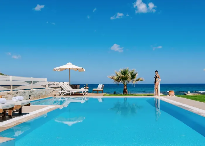Hersonissos Beach Villa este situat la câțiva pași de Muzeul Folcorului Lixnostatis și oferă o piscină privată și o terasă pentru un sejur relaxant. Cu vedere la mare, vila pe malul mării este situată la 3.5 km de Maria Sanoudaki Ceramic.
